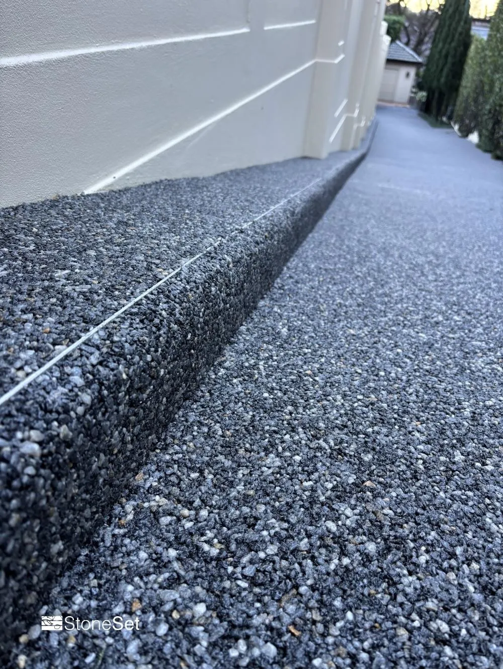 The seamless, resin-bound surface resists moss and weed growth and eliminates loose stone issues.